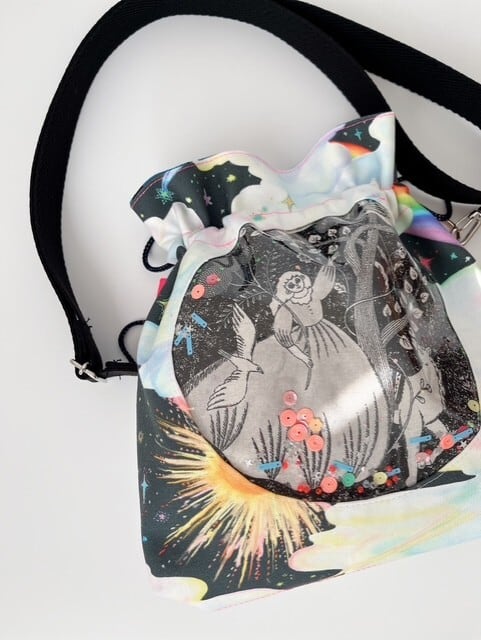 コラージュ☆ミニ巾着ショルダーバッグ☆女の子と白馬