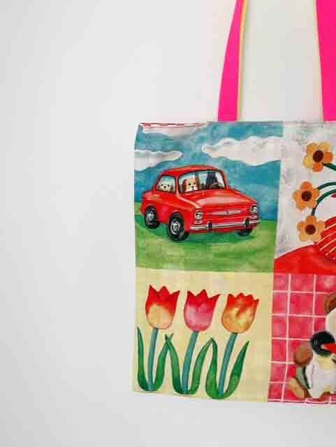 カラフルトートバッグMサイズ☆レトロアニマル