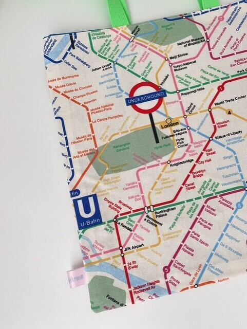 カラフルトートバッグMサイズ☆メトロ路線図☆オランダ生地