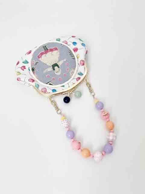 かわいいカラフルな持ち手付きのがま口ポシェットです。