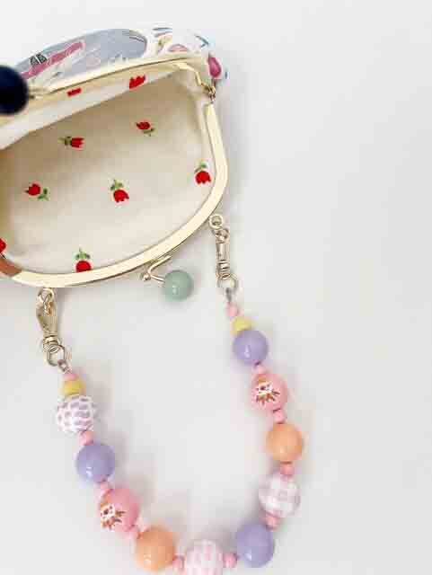 カラフルチェーン付き☆がま口ポシェット☆コラージュ☆女の子
