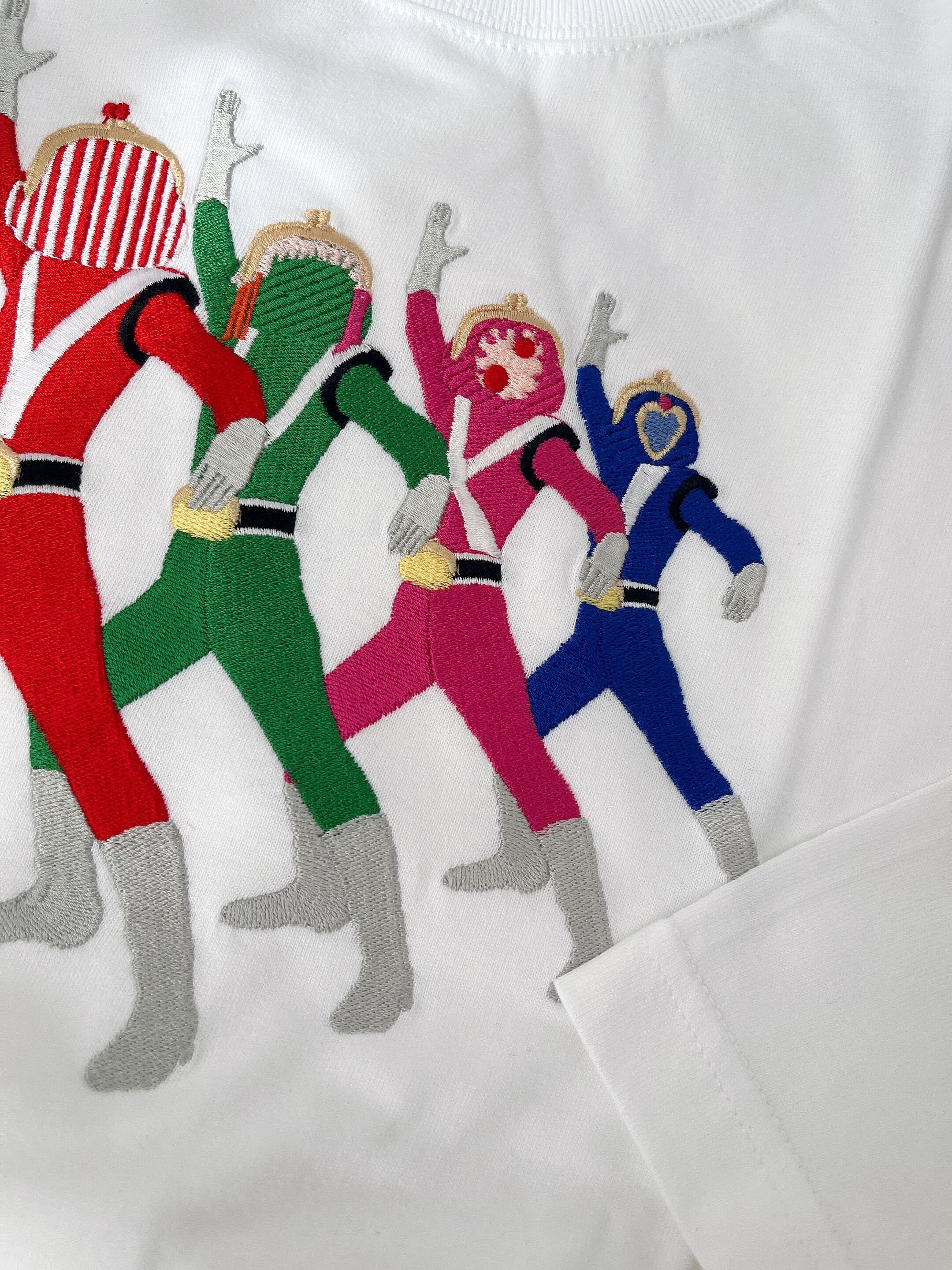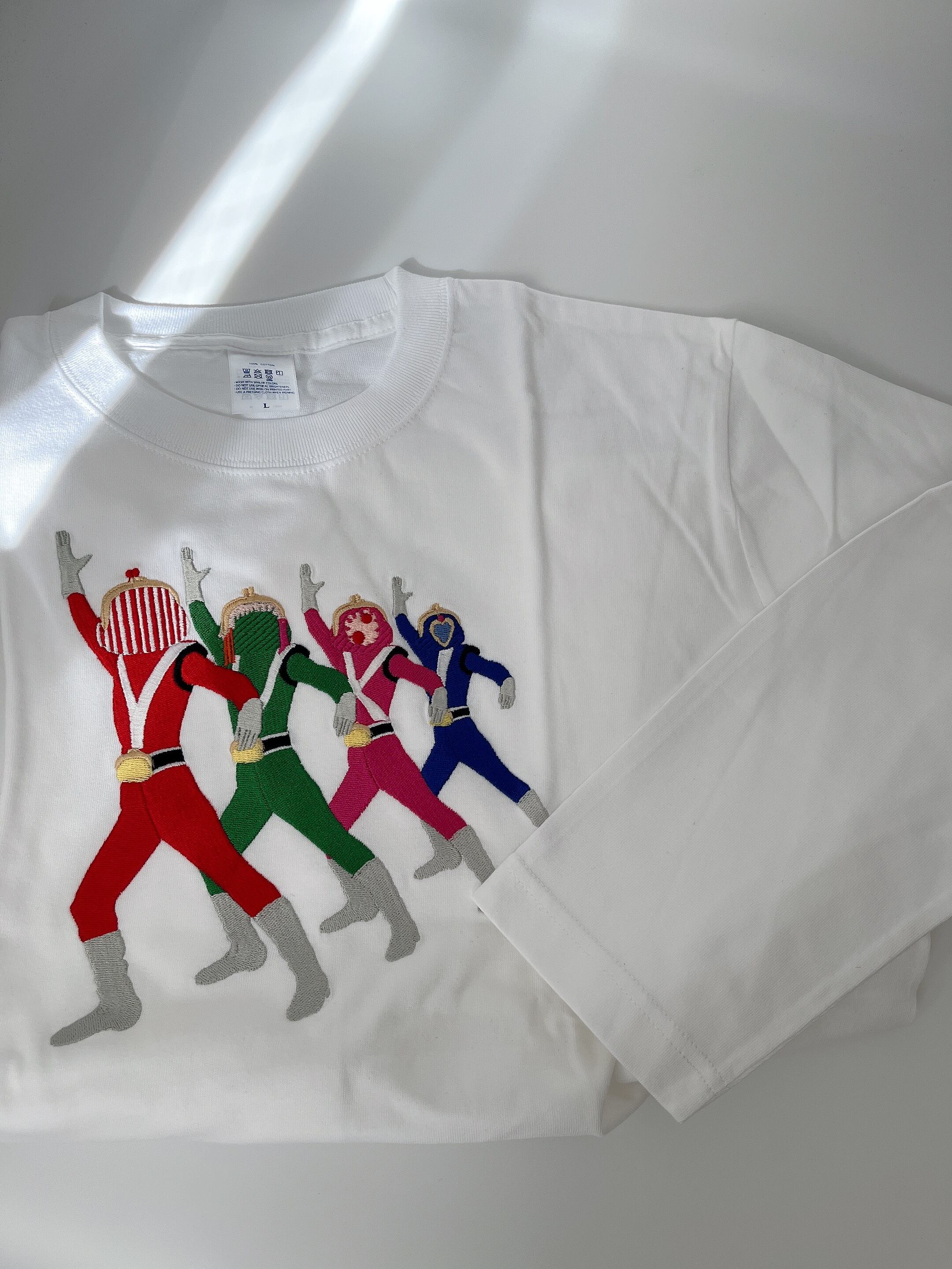 【Lサイズ】総刺繍!!がま口戦隊ロングスリーブTシャツ(白)