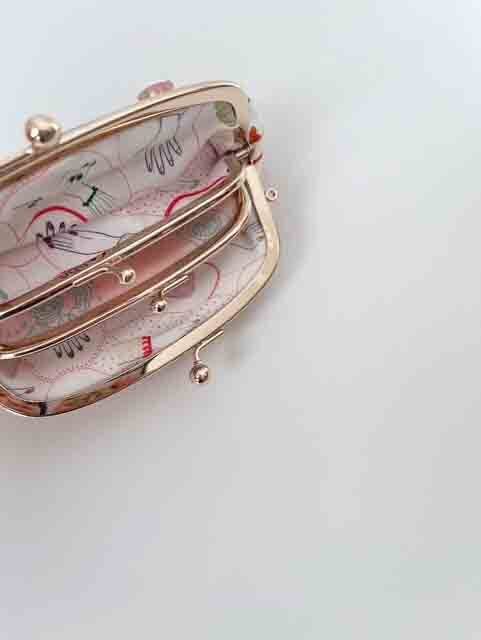 両端にはお札やカード、子がまには小銭を収納できる便利な親子がま口財布です。