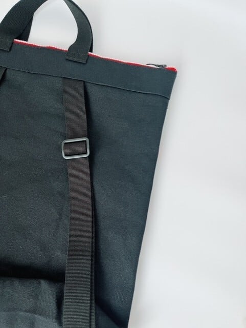背中側は国産の帆布を使用。カラーはブラックです。
