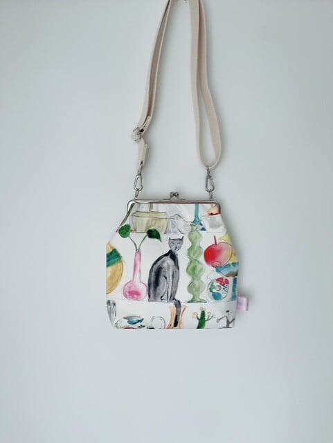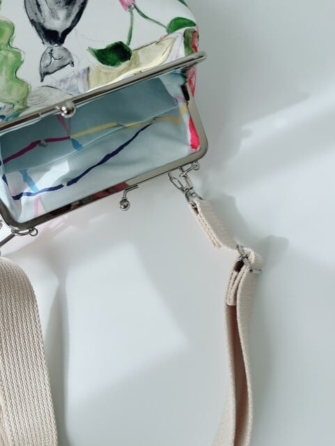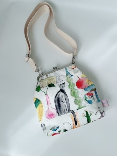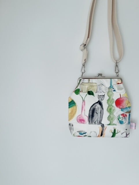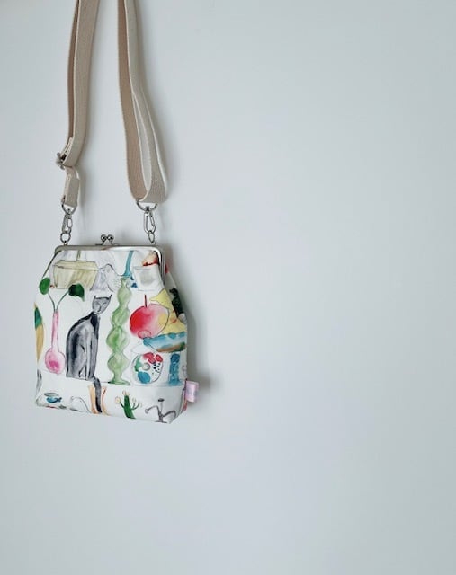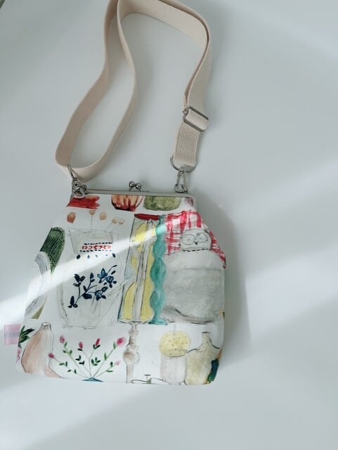 ショルダーベルト付きのがま口バッグ