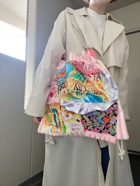 ※画像8枚目以降は同じ形の巾着バッグの着用画像です。