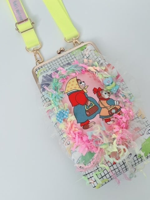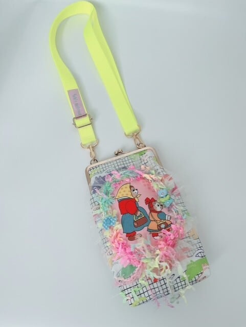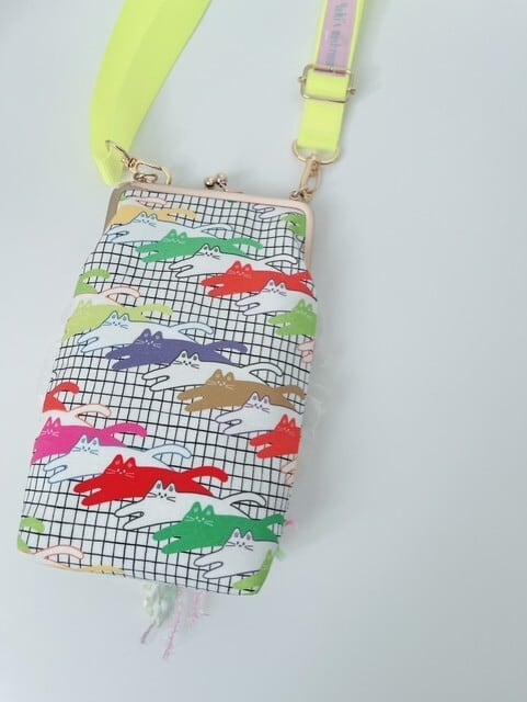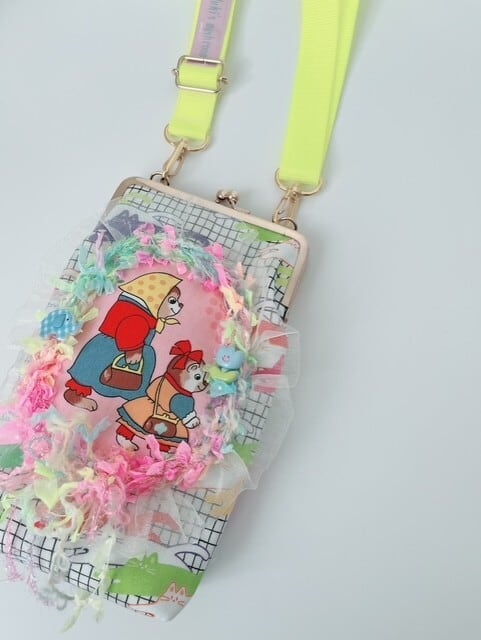 コラージュがま口縦長ポシェット☆スマホケース☆動物の親子