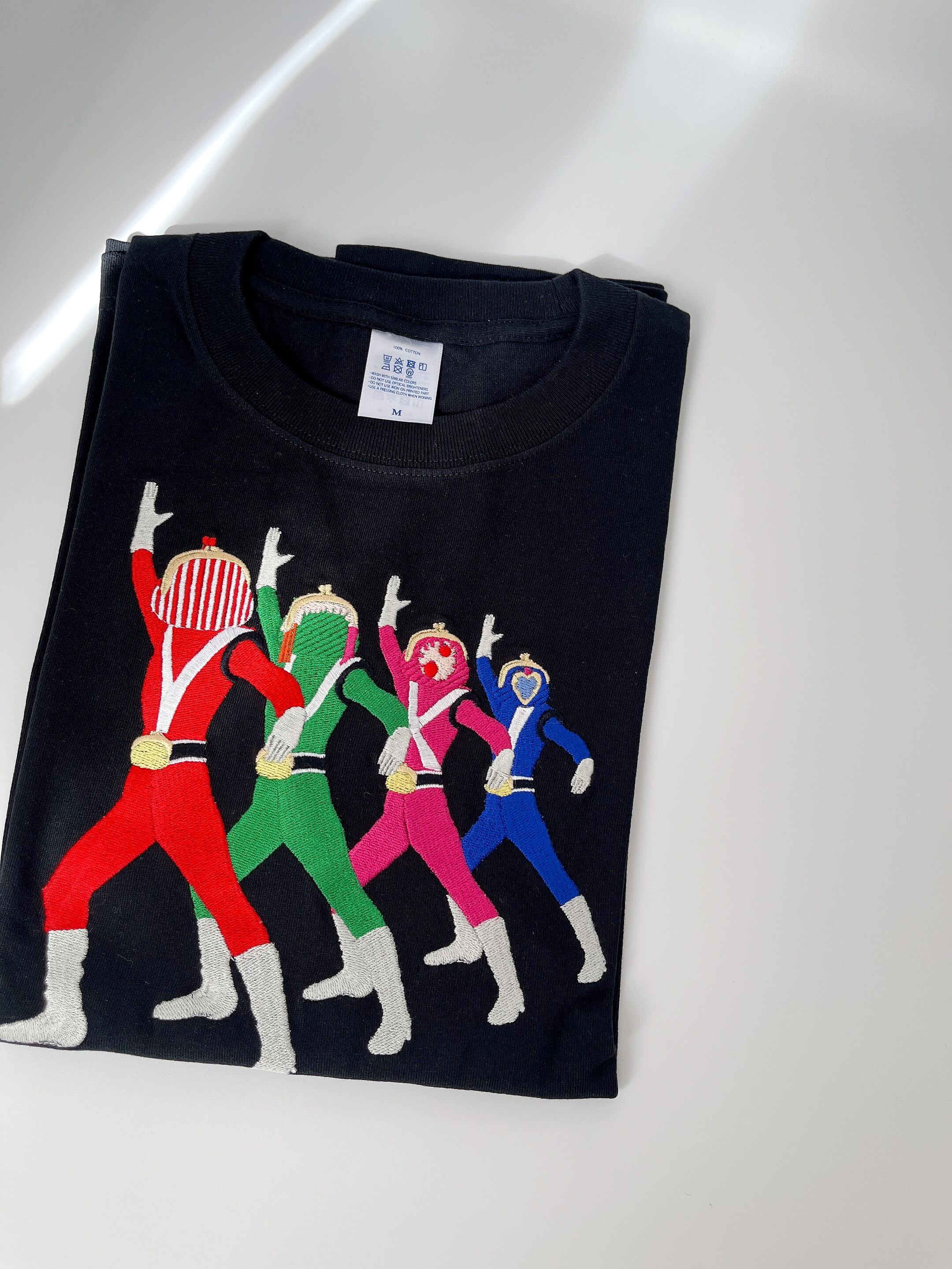 【Mサイズ】総刺繍!!がま口戦隊ロングスリーブTシャツ(ブラック)
